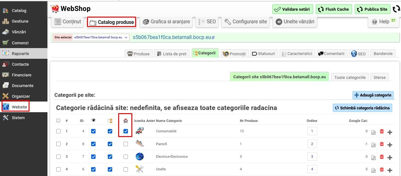 Se bifează căsuța în formă de căsuță, în dreptul categoriei dorite, pentru ca să apară pe pagina principală