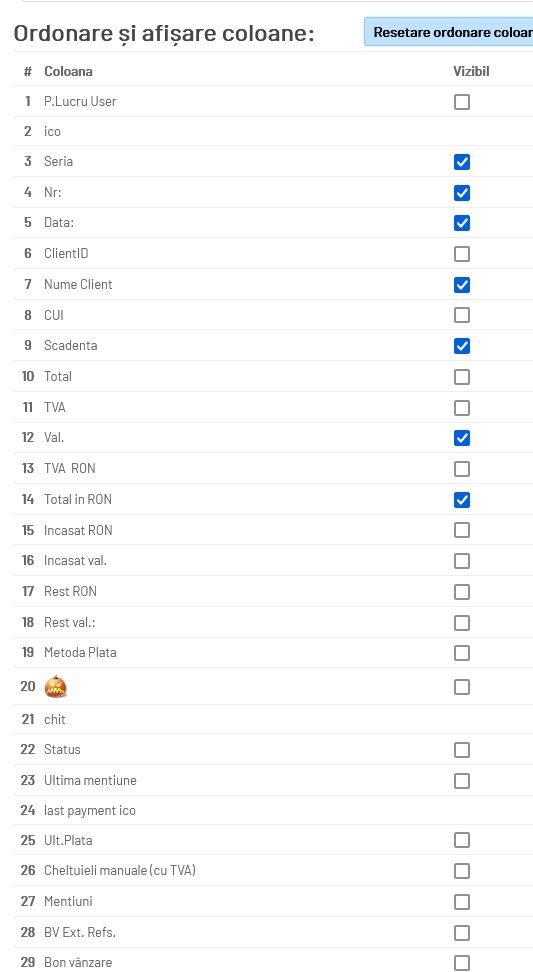 Aceste coloane se pot așeza în ordinea dorită cu drag&drop.