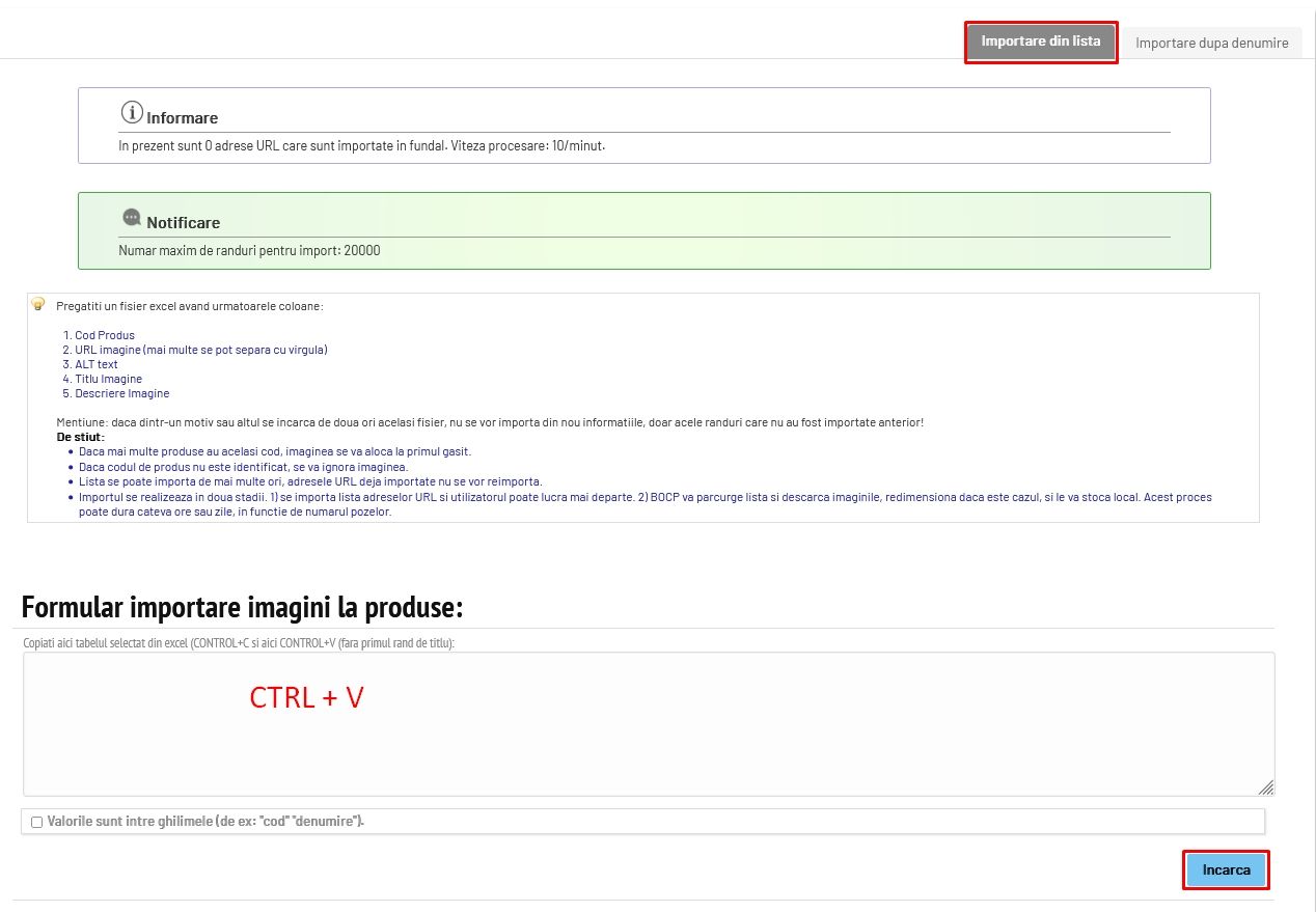 Cum import poze la produsele din BOCP?