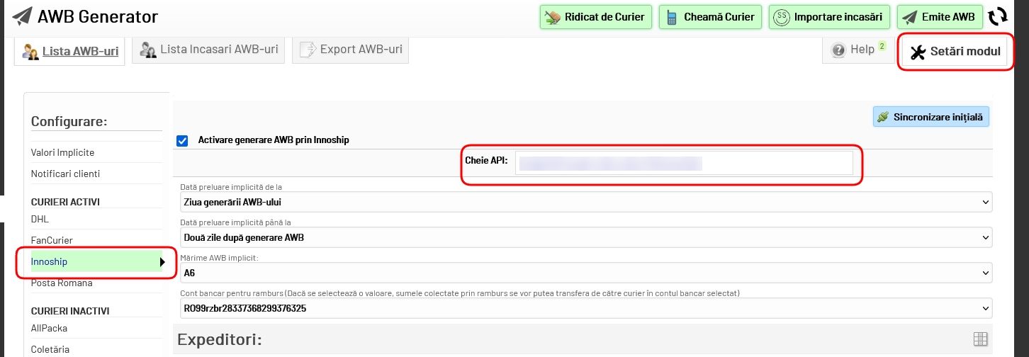 Pașii ce trebuie urmate pentru a configura generarea AWB-urilor prin Innoship:
