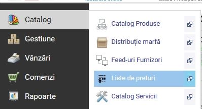 Modulul se accesează din meniul Catalog produse - Liste de preț