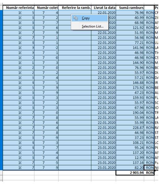 1) Se selectează din excel doar datele concrete conform printscreen: