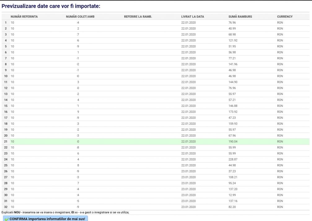 3) Apoi se apasă butonul Confirmă importarea datelor de mai sus