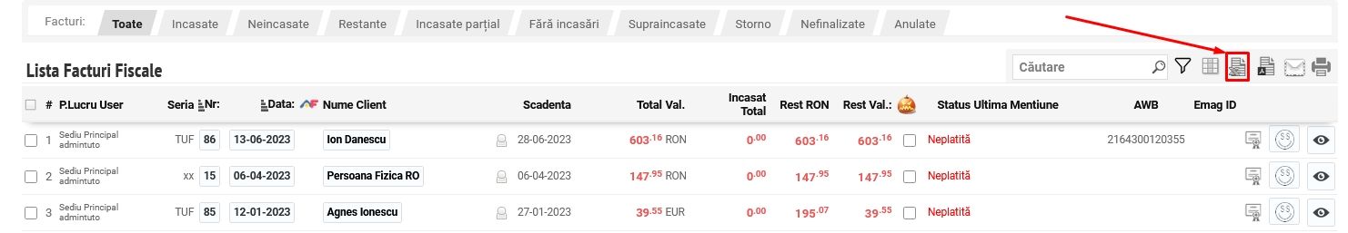 Export facturi în Excel