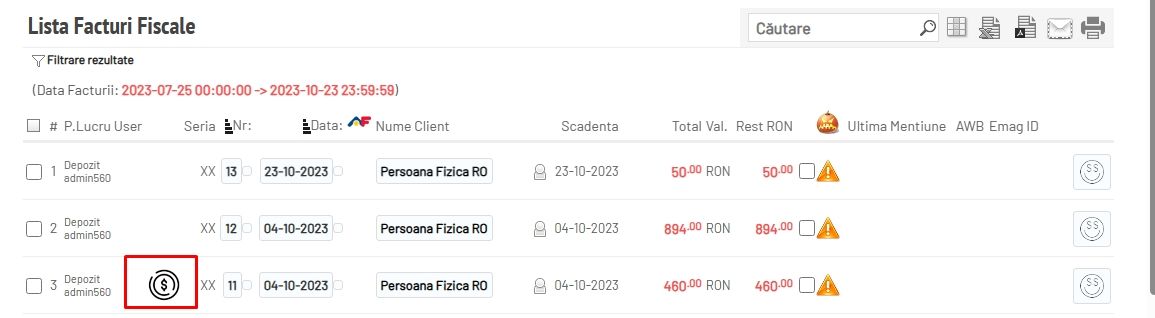 Facturile care conțin avans, sunt evidențiate pe lista de facturi fiscale prin semnul