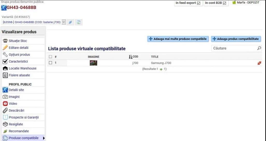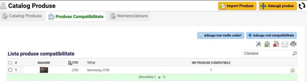 - Se utilizează butonul Adaugă mai multe produse compatibile, care se poate utiliza și pentru import