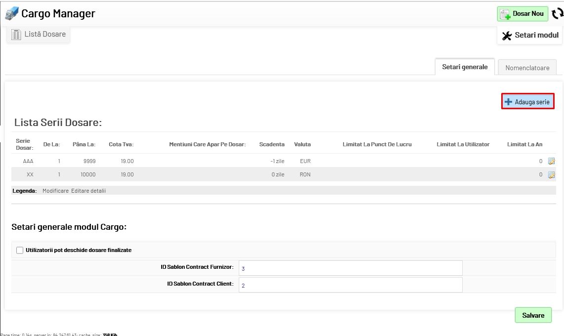 Pentru a configura modulul, se accesează meniul: Documente - Cargo Manager - Setări modul.
