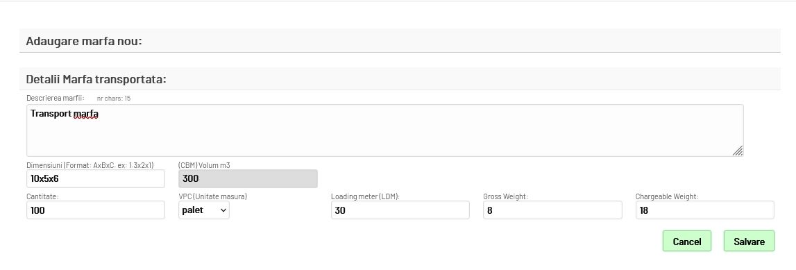 Următorul pas este să se adauge marfa care urmează să fie transportată.