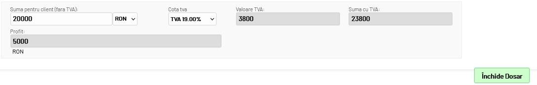 La final se introduce suma cu care se facturează clientului pe baza căruia modulul calculează profitul obținut.