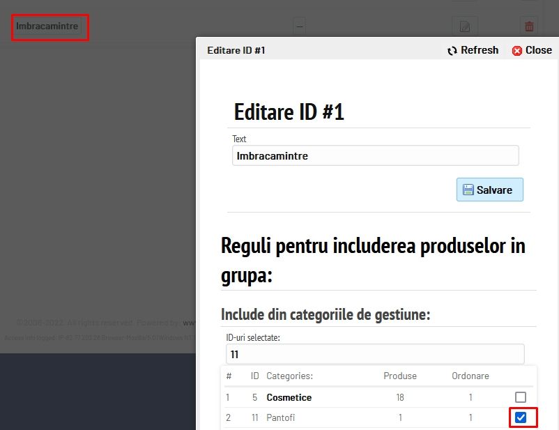 Configurare grupe de produse