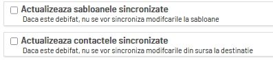 *Dacă nu se dorește actualizarea modificărilor făcute ulterior în contul din care se preiau informațiile, opțiunile de actualizare trebuie să rămână debifate