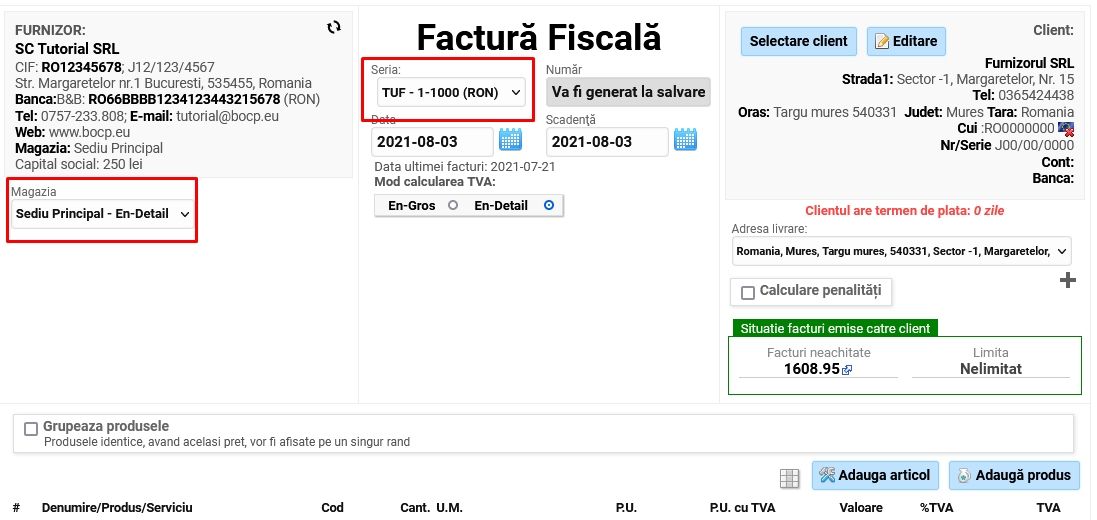 Este foarte important ca la emiterea facturilor să alegem punctul de lucru și seria corectă pentru factură