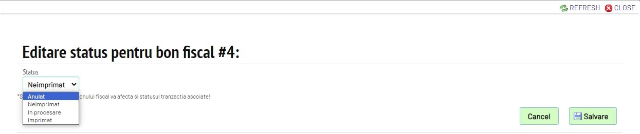 Cum schimb statusul unei încasări cu bon fiscal?
