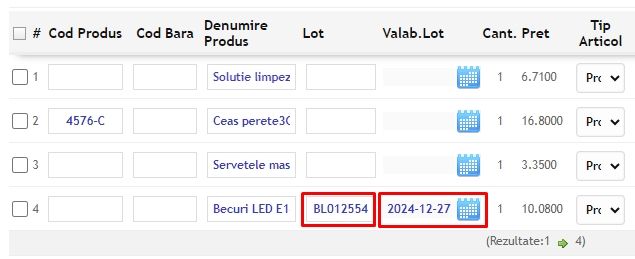 Astfel, în dreptul produsului dorit, se poate înregistra numărul lotului și data de expirare în câmpurile destinate.