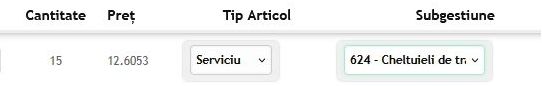 În cazul articolelor de tip Serviciu se poate selecta manual contul contabil pe care să fie înregistrat serviciul (pe coloana Subgestiune)