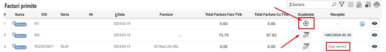 Pentru a avea o mai bună viziune asupra facturilor care trebuie sau nu trebuie recepționate, se pot marca acele facturi care conțin Doar servicii.