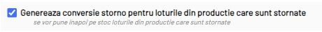 - Anularea facturii/vânzării de storno nu va recrea din nou producția, în acest caz trebuie intervenit manual pentru generarea conversiei