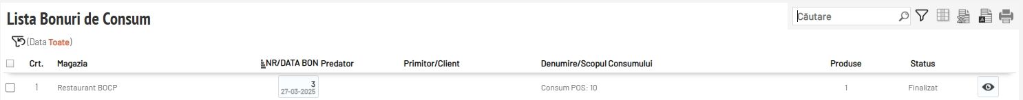 , acesta va deschide modulul Bon consum din online cu lista bonurilor de consum generate având referință către ID-ul bonului din POS.